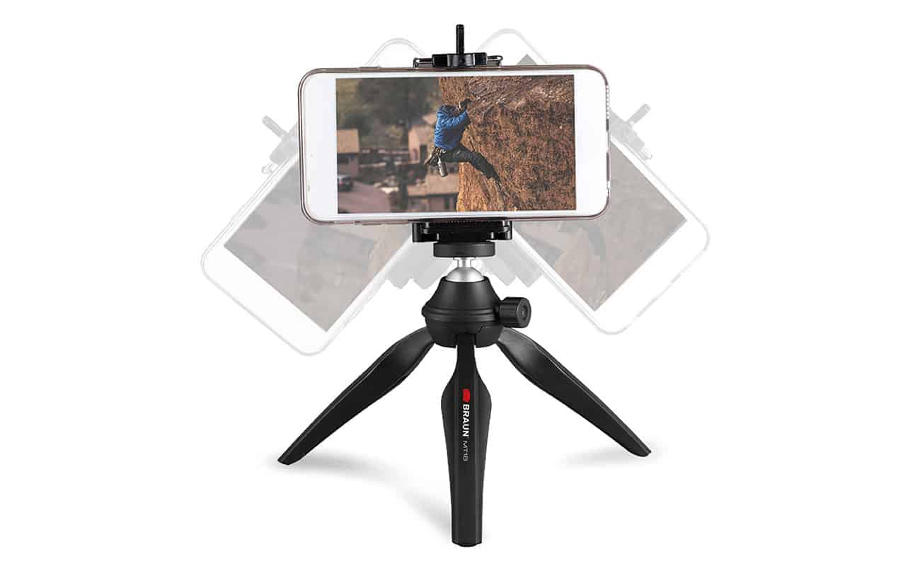 Braun gibt eine maximale Stativhöhe von 18 cm an, die minimale Höhe wird mit 13 cm angegeben. Das Tischstativ MT-18 selbst besteht aus glasfaserverstärktem Nylon, während der Kugelkopf aus Aluminium gefertigt ist und sich um 360 Grad drehen lässt. Der Hersteller setzt auf ein 1/4-Zoll-Gewinde. Das MT-18 ist sowohl für DSLRs als auch Actioncams oder Smartphones geeignet. Für letztere befindet sich eine spezielle Halterung im Lieferumfang. Rutschfeste Gummifüße sollen für einen guten Halt auf glatten Oberflächen sorgen.