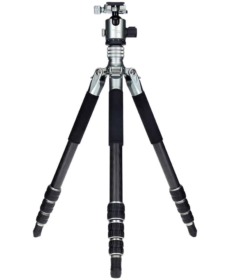Schon beim Auspacken fällt mir auf, dass das „L“ im Namen nicht nur für „Large“ sondern auch für „Leicht“ stehen könnte. Das kommt vom Material. Die Stativbeine bestehen aus 11-lagigem Karbon, das nicht nur im Stativbau wegen der Kombination aus geringem Gewicht und Stabilität gefragt ist.