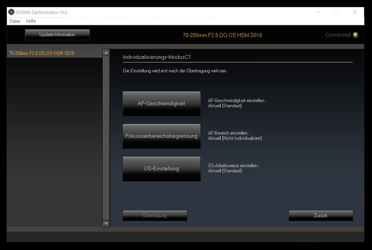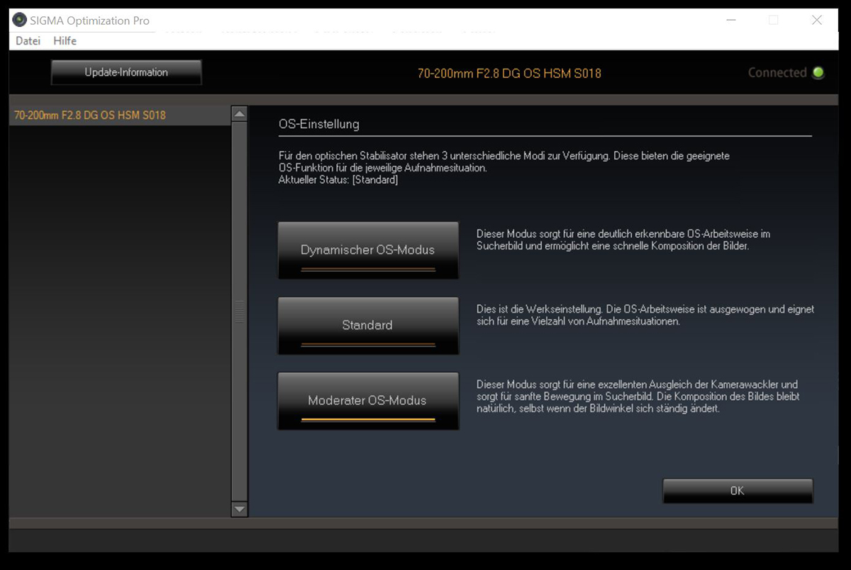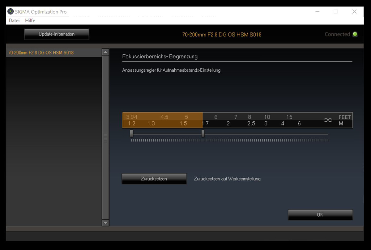 Da bei DSLRs Bildsensor und AF-Sensor getrennte Einheiten sind, muss beim ein oder anderen Modell der AF vielleicht etwas nachjustiert werden, damit bei F2.8 und 200 mm alles genau passt. Mit dem Sigma USB-Dock und der Software „Sigma Optimization Pro“ ist das gut zu machen (natürlich auch bei den beiden anderen Zooms und anderen Sigma Objektiven).