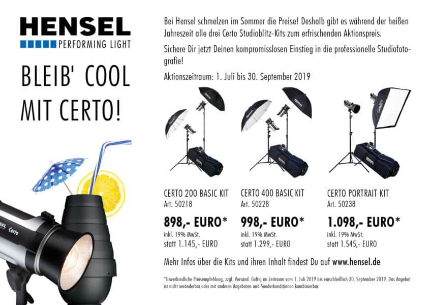 Passend zur Jahreszeit haben die Beleuchtungsprofis von Hensel aus Würzburg die Certo Sommeraktions ins Leben gerufen. Diese richtet sich an Amateure, Einsteiger und preisbewusste Kunden, die den Einstieg in die Welt der großen und vielseitigen Lichtsysteme wagen wollen.