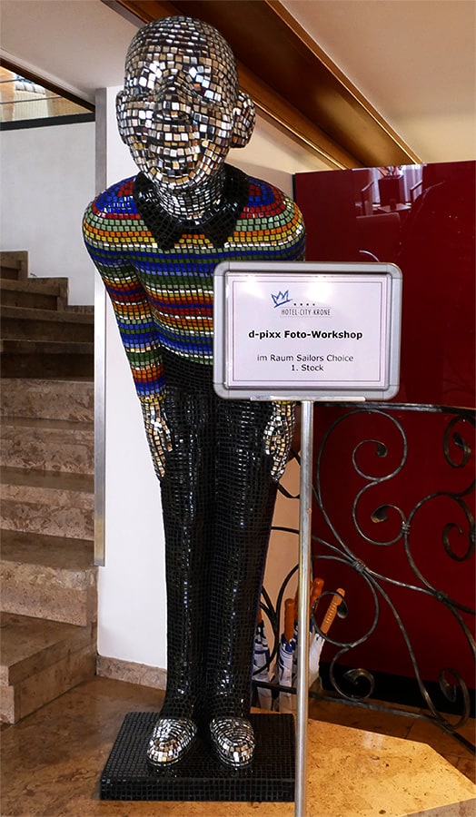 Der offizielle Beginn mit Kaffee (vom Hotel) und Kuchen (von d-pixx foto) ist für 15 Uhr angesetzt, aber die ersten Teilnehmer kommen schon früher … zum Tagungsraum geschickt von einem stummen Diener in der Hotel-Lobby.