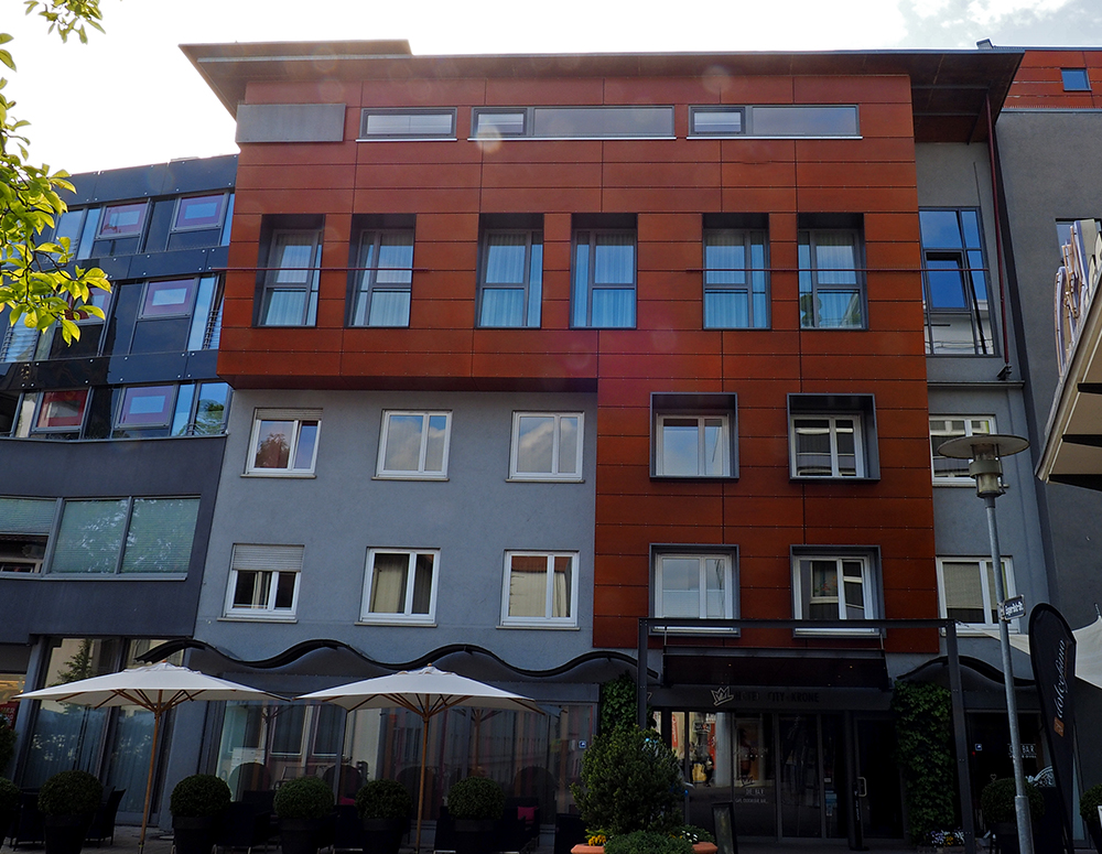 Aber wir sind einen Tag früher unterwegs als die Teilnehmerinnen und Teilnehmer an unserem Bodensee-Workshop und deshalb ist es nicht so schlimm, dass wir später als geplant in Friedrichshafen beim Hotel City Krone ankommen.