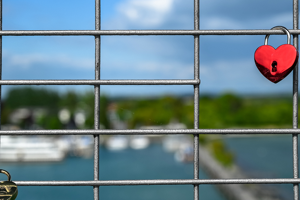 Dann löst die Gruppe sich erst einmal auf. Die einen gehen nach links in die Seestraße, die (der Name legt es ja schon nahe) direkt am See Richtung Medienhaus und Zeppelin-Museum und einen schönen Blick auf den Molenturm gewährt. Außerdem erreicht man hier eine Aussichtsplattform mit den unvermeidlichen Liebesschlössern.