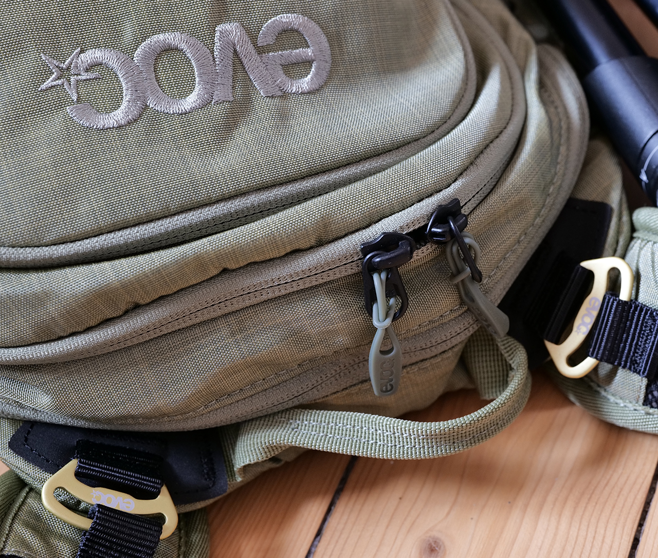 Schön wäre es, wenn Evoc noch weitere kleine Fächer integriert hätte, beispielsweise um befüllte und leere Speicherkarten oder zusätzliche Akkus sinnvoll organisiert verstauen zu können.