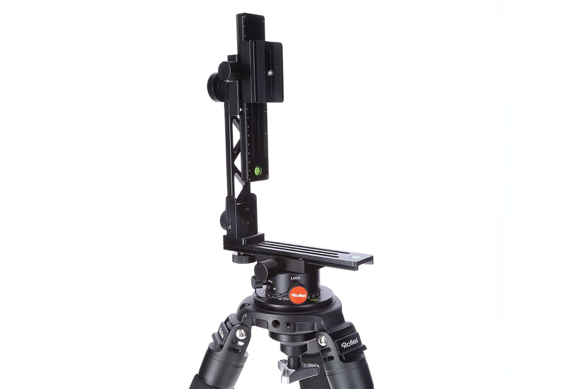 So wurde beispielsweise der Nodalpunkt mit einem Kreuz versehen, was die Einstellarbeiten erleichtern soll. Zudem gibt es auf beiden Rotationsachsen je eine integrierte Wasserwaage. Ebenso sollen Skalen in Zentimeter und Inch auf den Gleitschienen dafür sorgen, dass die Rotationsschritte präzise vollzogen werden können. Laut Rollei können DSLR- oder DSLM-Kameras bis zu einem Gewicht von 3 kg genutzt werden.