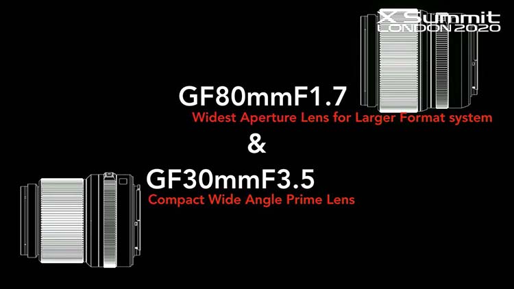 Für Mittelformatkameras der GFX-Serie kommen zwei Objektive, die zum einen Landschaftsfotografen (30 mm F3.5) und zum anderen Porträtfotografen (80 mm F1.7) ansprechen sollen.