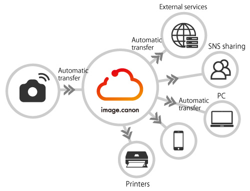 image.canon soll die Bilder der Anwender automatisch oder manuell von einer WLAN-fähigen Canon-Kamera übertragen – die automatische Übertragung wird jedoch erst mit Modellen des 2020er-Jahrgangs möglich sein. Vor dort aus können die Aufnahmen dann an weitere Endgeräte und Dienste wie Google Drive, Flikr oder YouTube weitergeleitet werden.