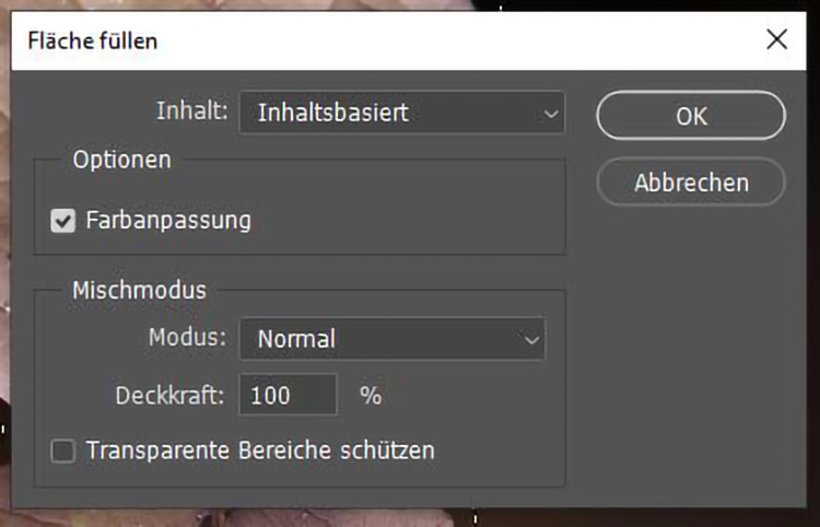 Hierfür kann das übliche Schnellauswahlwerkzeug benutzt werden oder wie ich in meinem Fall das Objektauswahlwerkzeug, welches seit der Photoshop-Version 2020 verfügbar ist. Polygon-Lasso etc. ist natürlich auch möglich – ganz wie man möchte.