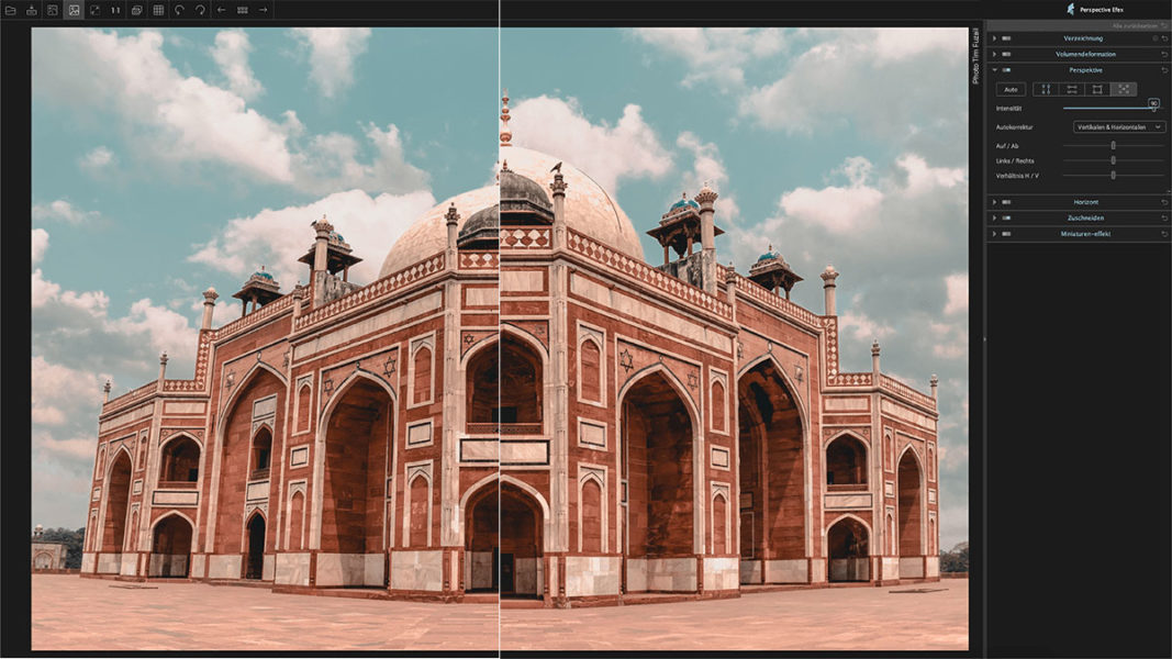 Wer sich gern mit geometrischen Korrekturen beschäftigt, der kann einen Blick auf das neue Plug-in Perspective Efex werfen. Darin werden zahlreiche Tools zusammengefasst. Beispielsweise werden automatisch Fluchtlinien korrigiert.