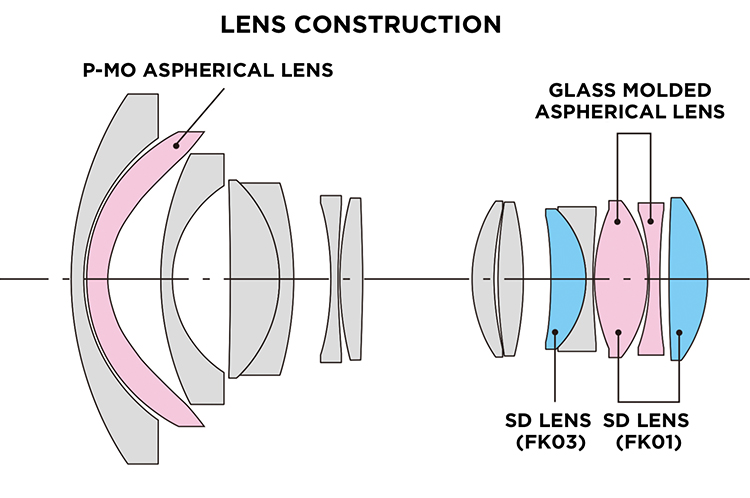 Um die außergewöhnliche optische Leistung zu erzielen, die für Ultraweitwinkel-Zoomobjektive erforderlich ist, kommen drei asphärische Glaselemente sowie drei Super-Low-Dispersion-Glaselemente zum Einsatz, um Verzerrungen zu minimieren, sphärische Aberration und Astigmatismus unter Kontrolle zu halten. Gleichzeitig werden auf diese Weise hohe Kontraste sowie eine hervorragende Auflösung über den gesamten Bildbereich erzielt.