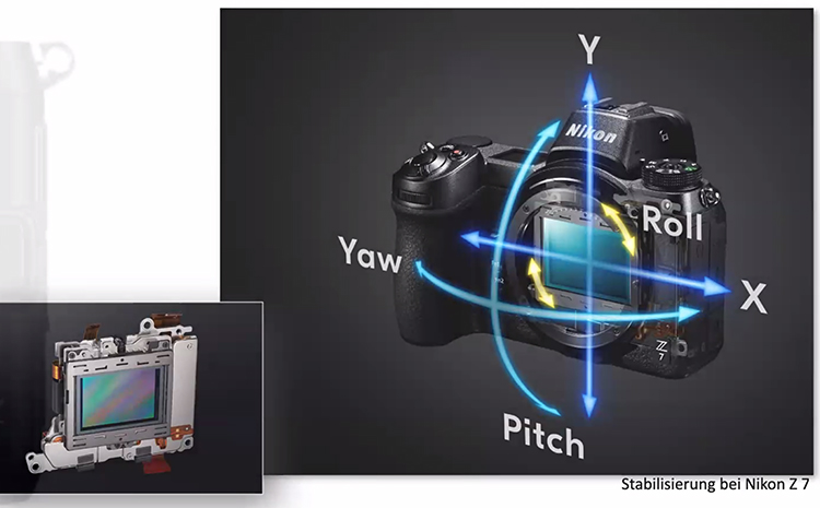 Der Stabilisator ist aus der Nikon Z 6 / Z 7 bekannt und wie dort arbeitet er mit stabilisierten Objektiven zusammen.