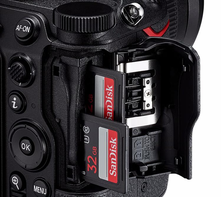 Einen wichtigen Unterschied zur Z 6 / Z 7 findet man, wenn man die Klappe auf der rechten Schmalseite öffnet. Dahinter befindet sich kein Slot für eine XQD / CFexpress-Karte sondern zwei Slots für SD-Karten (UHS-II kompatibel).