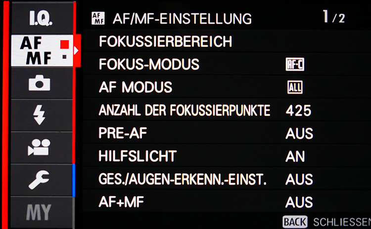 Man kann entweder mit 117 Messfeldern oder 425 Messfeldern arbeiten. Sie sind bis nah an den Bildrand positioniert, um Aufnahmen mit einem spannenden Bildaufbau zu ermöglichen. Es stehen verschiedene Größen für ein einzelnes Feld zu Wahl, man mit einer Gruppe arbeiten oder alle Felder aktivieren, aus denen dann die Automatik mit einer sehr guten Trefferquote das passende auswählt.
