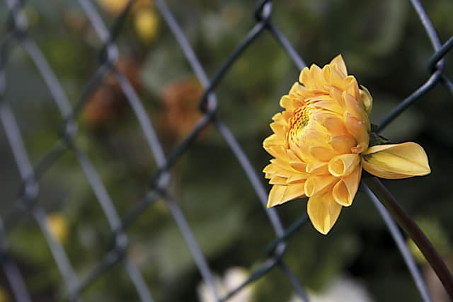 Der gelbe Dahlie und der Zahl „13“ auf einem Container fehlt jeweils das Gegenüber. Die andere Bildhälfte ist zwar jedes Mal in Farbe und Struktur gleich, was zur Geschlossenheit des Bildes beiträgt, das aber mehr noch von der Spannung „Hauptmotiv – kein Hauptmotiv“ lebt.