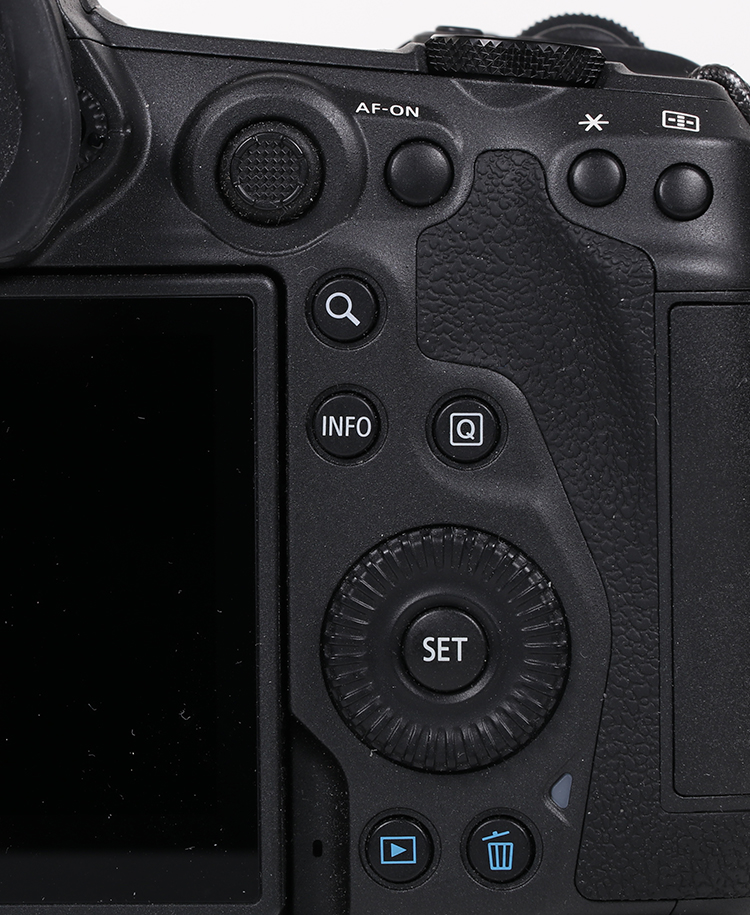 Dazu kommen acht weitere Tasten, die ich nicht einzeln aufliste – aber der Mini-Joystick, mit dem sich das AF-Messfeld verschieben lässt, und die AF-ON-Taste, mit der man den AF unabhängig vom Belichtungsmesser starten kann, müssen lobend erwähnt werden. (Dass der Multifunktionsbalken bzw. Touchbar der EOS R nicht vorhanden ist, wird wohl kaum jemanden wirklich stören, es sei denn, man nutzt beide Gehäuse parallel.)
