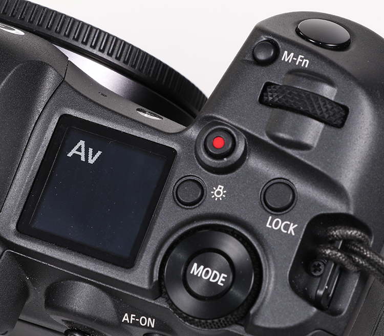 Weiter vorne sind der Knopf für Beleuchtung des Statusmonitors, der Videoauslöser und LOCK-Taste zu finden, mit der man die Touchfunktion und bestimmte Einstellräder deaktivieren kann, wenn man sie zuvor im Menü ausgewählt hat.