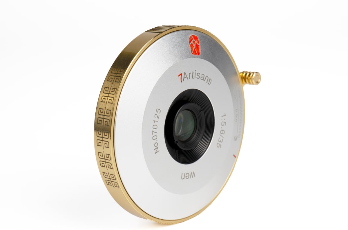 Das neue 7Artisans 35 mm f/5,6 WEN Pancake für Leica M soll nicht nur mit einer überzeugenden Abbildungsleistung aufwarten können, sondern auch ein echter Hingucker sein. Das Pancake-Objektiv besitzt ein robustes, 218 g schweres Metallgehäuse im Silber-Gold-Finish. Darüber hinaus sind ein markanter Fokussierhebel und eine Entfernungsskala vorhanden, was dem Objektiv einen gewissen Retro-Look verleiht.