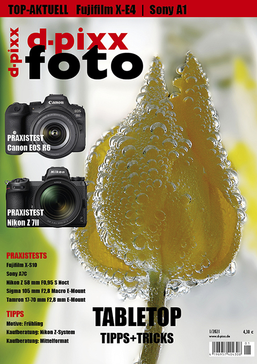 In unserer ersten Ausgabe im Jahr 2021 legen wir den Schwerpunkt auf die Tabletop-Fotografie. Neben grundlegenden Gedanken zu diesem Feld der Fotografie gibt es ein ausführliches How-To zu einer Aufnahme. Ebenso stellen wir passende Leuchten und ein passendes Stativ-System vor.