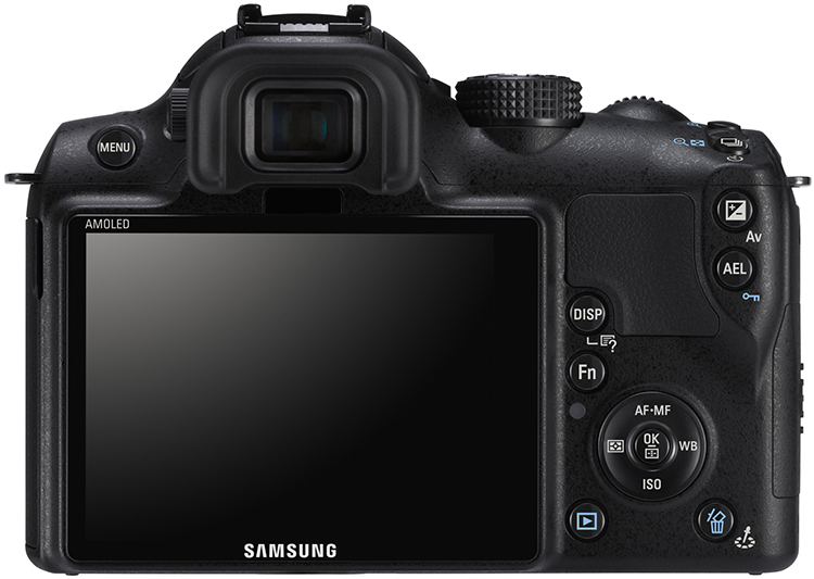 Der CMOS-Chip ist das Zentrum eines schlanken, elegant abgerundeten Gehäuses im Spiegelreflexstil. Das heißt, das Gehäuse weist den typischen Sucherbuckel auf, unter dem aber natürlich ein elektronischer Sucher steckt (und auch ein ausklappbarer Blitz).
