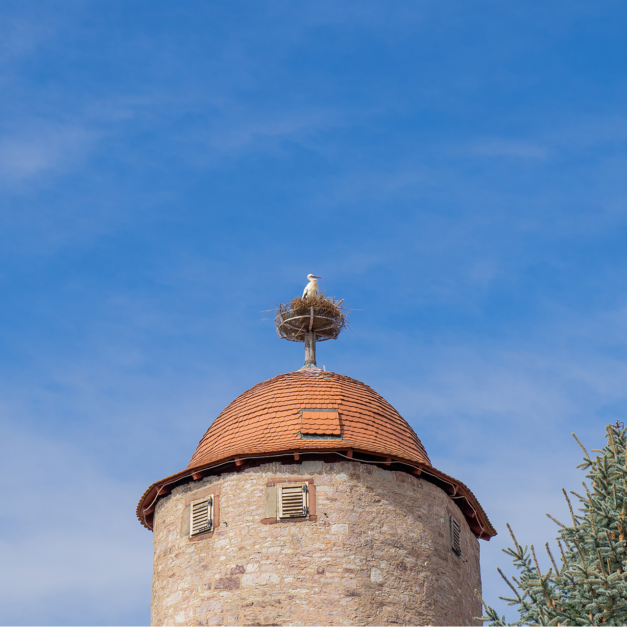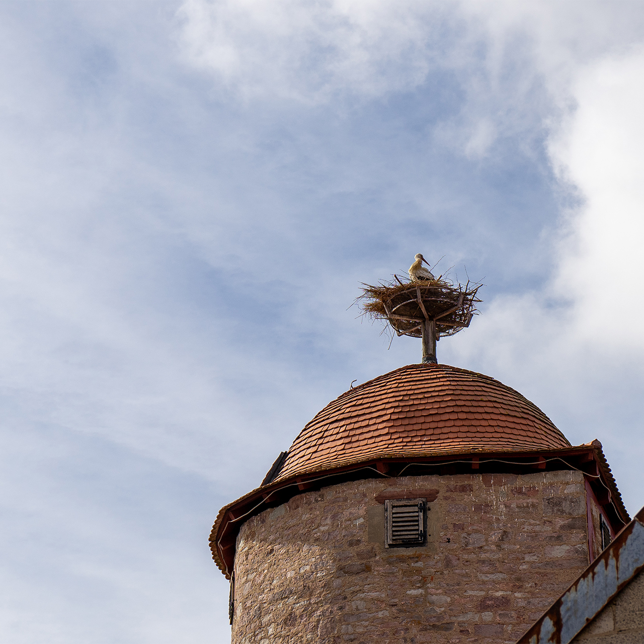 Für einige Motive reichte das … aber dann entdeckte ich auf dem Rückweg, dass zumindest ein Storch das vorbereitete Storchennest auf dem Mönchsturm bezogen hat.