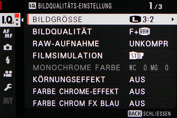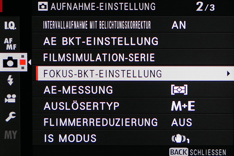 Apropos Bracketing: Man kann auch Serien für Belichtung, Weißabgleich, Filmsimulationen, ISO-Wert und DRO (Dynamic Range Optimizer) aufnehmen, um in schwierigen Situationen auf der sicheren Seite zu sein.