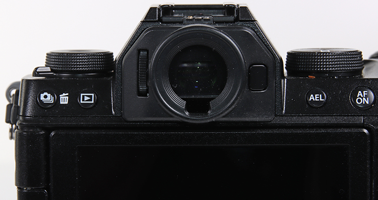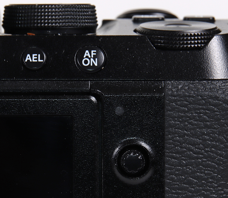 Ein in der Praxis ungemein wichtiges Einstellelement auf der Rückwand ist ein mini Mini-Joystick (er ist wirklich mini und dürfte ruhig doppelt so groß sein), mit dem man den AF-Punkt im Sucherbetrieb sehr schnell dort positionieren kann, wo man ihn haben möchte.