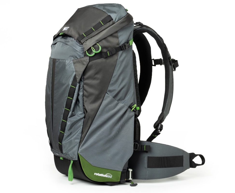 Die Rotation-Rucksäcke, die es mit einem Fassungsvermögen von 22, 34 oder 50 Litern gibt, sollen sich als besonders Outdoor-tauglich erweisen und wurden aus Nylon gefertigt und besitzen Innen und Außen ein DWR-beschichtetes Gewebe. Entsprechend sind Hüfttasche und Rucksack wetterfest, die Reißverschlüsse werden abgedeckt. Einen Regenschutz gibt es als separates Zubehör. Für eine möglichst flexible Beladung mit Kamera-Equipment, aber auch mit Outdoof-Zubehör werden zahlreiche verschiedene Tasche geboten. Die beiden größeren Modell sind zudem mit einer Trinkblase kompatibel.