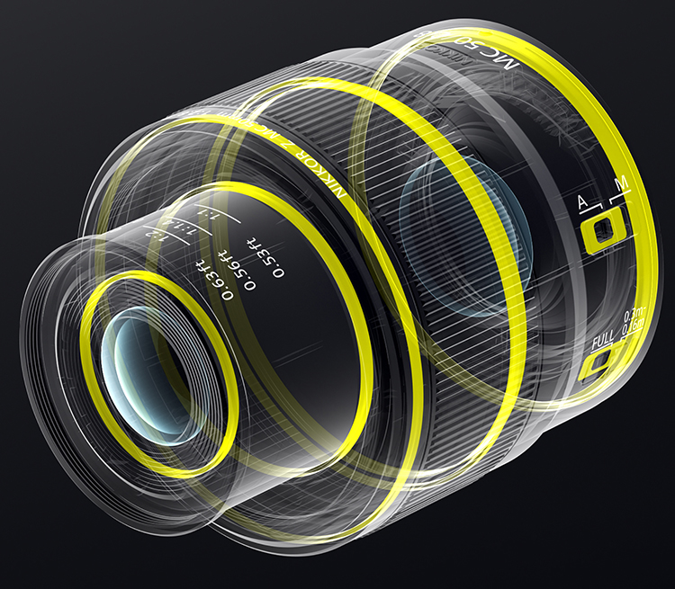 Der konfigurierbare Einstellring, der mit den Z Nikkoren eingeführt wurde, fehlt auch beim 50-mm-Makro-Objektiv nicht.