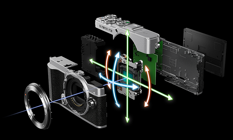 Die bewegliche Lagerung des Sensors macht es möglich, Verwacklungen zu minimieren. Der 5-Achsen-Stabilisator soll bis zu 4,5 EV ausgleichen.