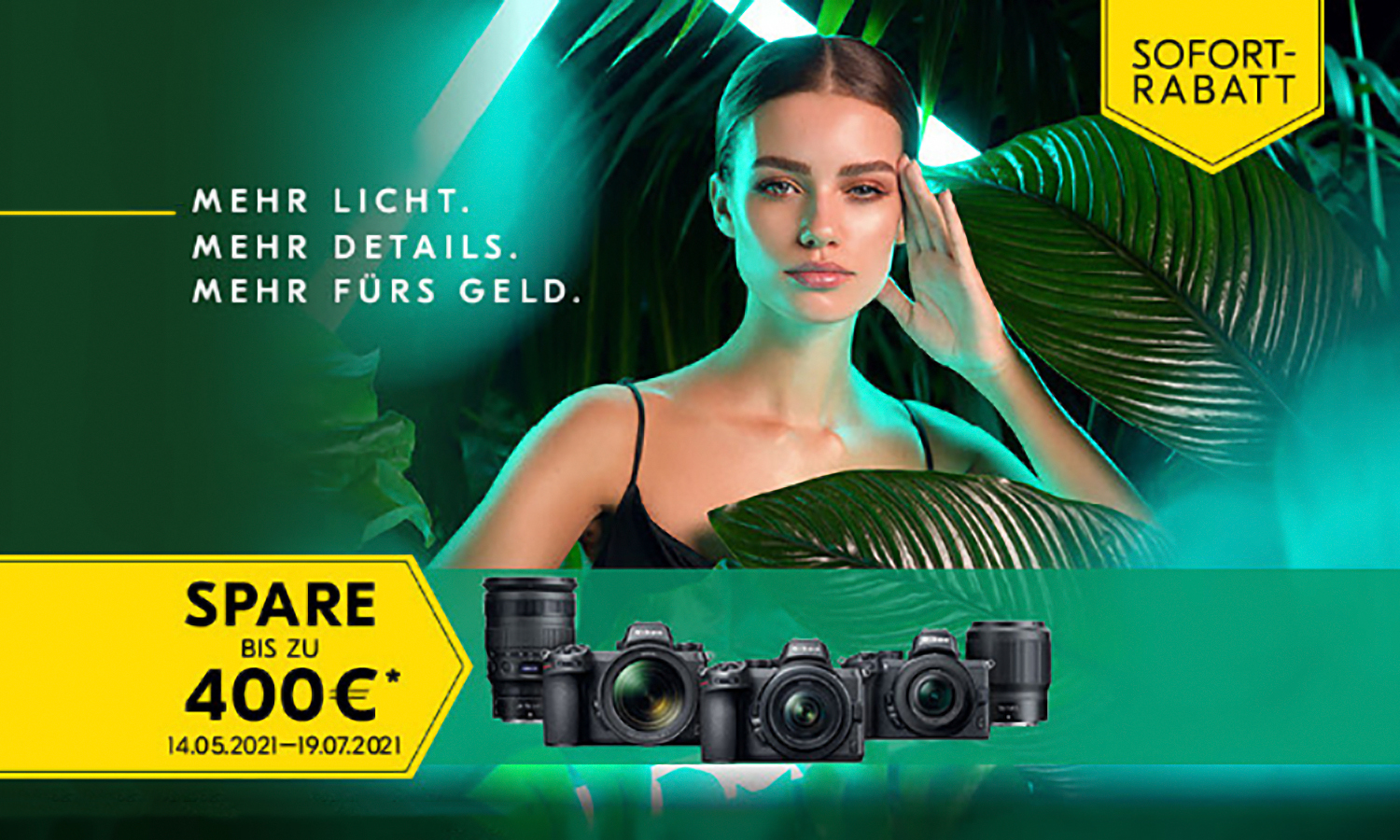 Ob man ins System der spiegellosen Systemkameras von Nikon einsteigen oder eine bestehende Ausrüstung erweitern möchte – noch bis zum 19.7.2021 kann man dabei sparen. Maximal 400 € können zugunsten der Urlaubskasse oder anderer Anschaffungen herausspringen.