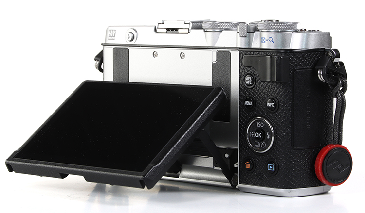 Die E-P7 kommt leider ohne EVF aus und man muss das Bild auf dem Rückwandmonitor (3“, 1,04 Mio. RGB-Dots) gestalten. Bei hellem Sonnenlicht ist der Monitor als Sucherersatz allerdings nicht optimal (das gilt für andere Monitore aber auch). Ein Problem ist, dass man immer wieder sein Spiegelbild auf dem Monitor sieht. Das zweite Problem ist, dass man von hellem Umgebungslicht geblendet wird, weil man die Kamera ein ganzes Stück vor dem Auge hält. In einigen Situationen hilft es, den neigbaren Monitor anzupassen.