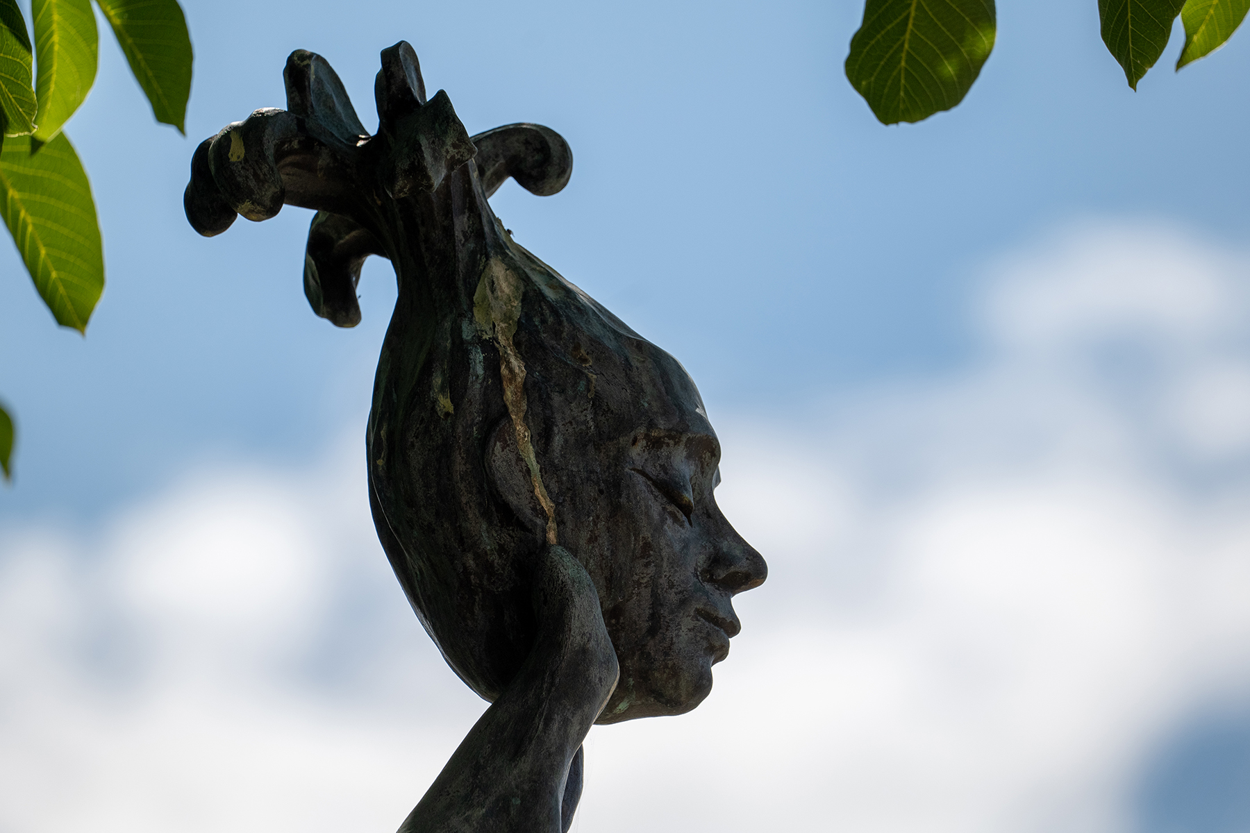 Einer der Klassiker auf meiner Hammelburger Runde: Die Skulptur Romeo und Julia“ des Turnhouter Künstlers Luk Van Soom am Mönchsturm.