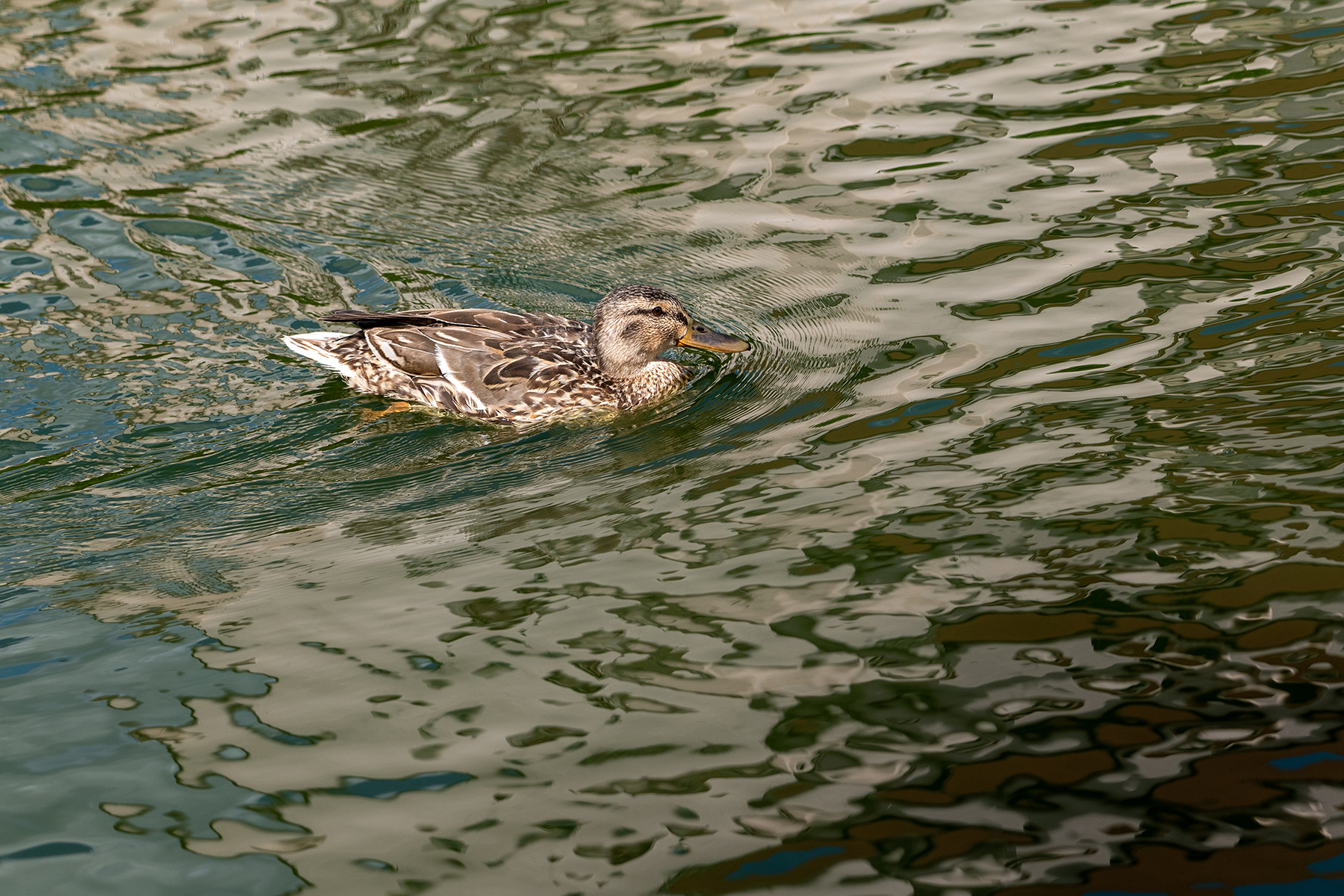 Mangels Großwild wurde wieder der Ente auf dem Weiher zum Motiv.