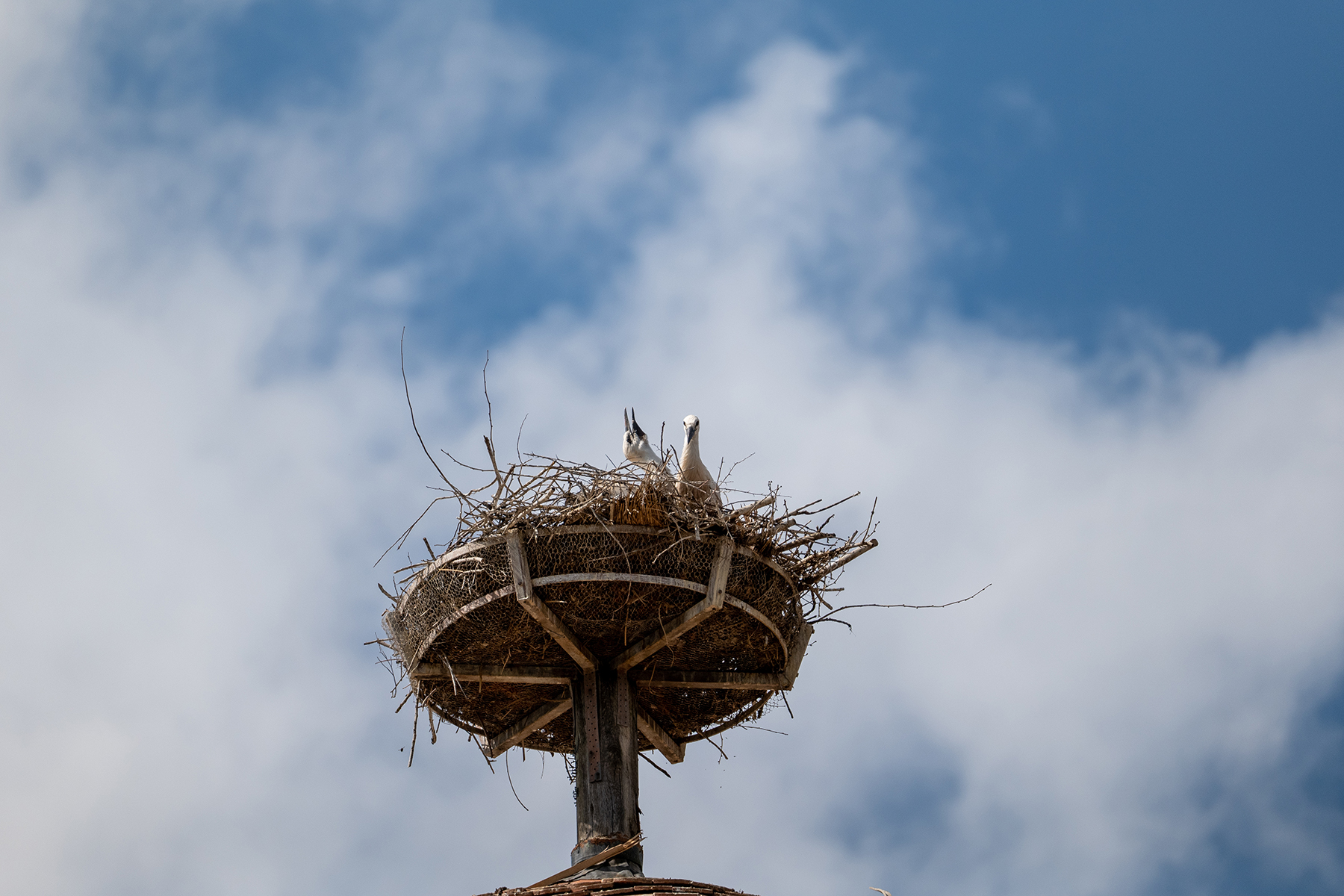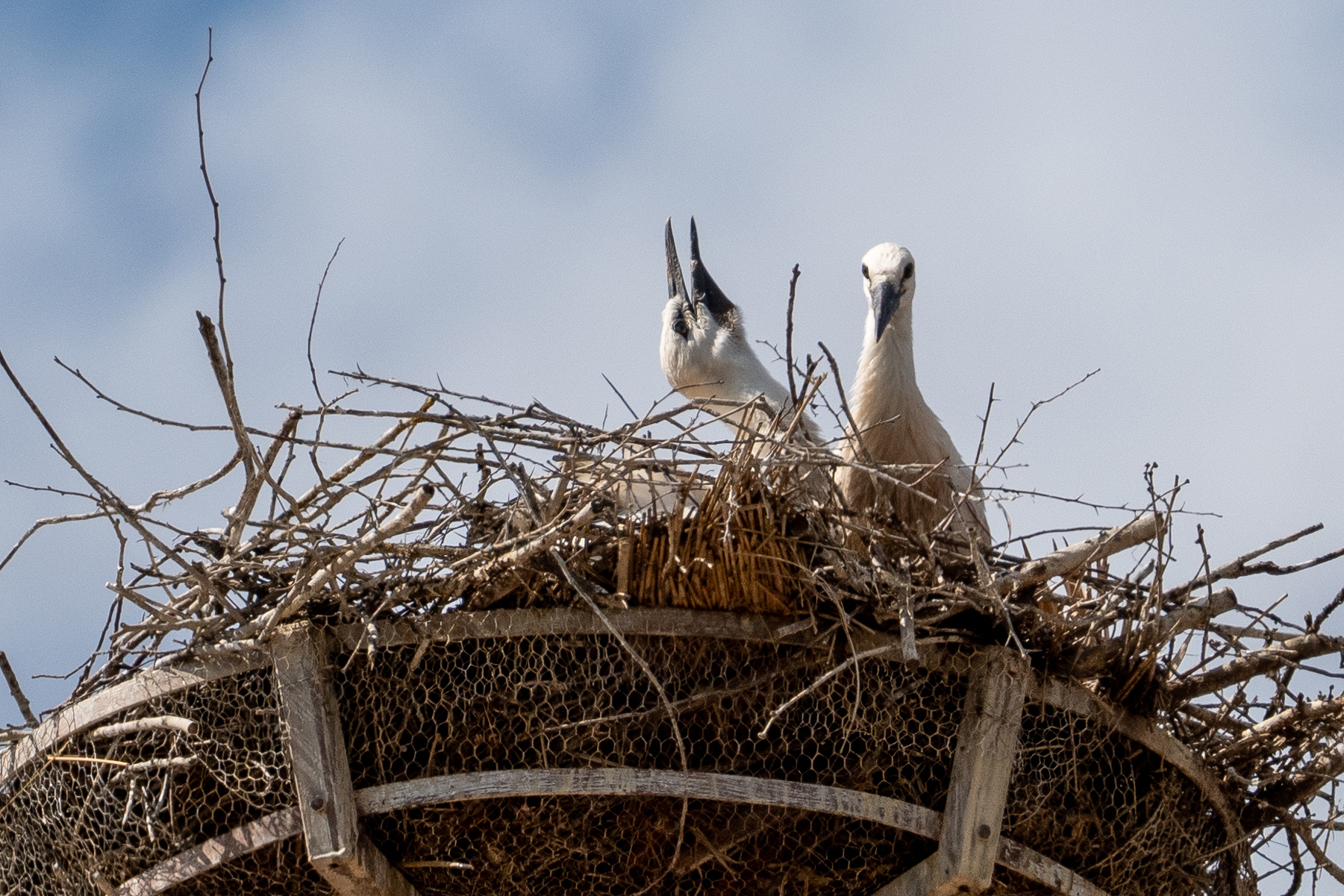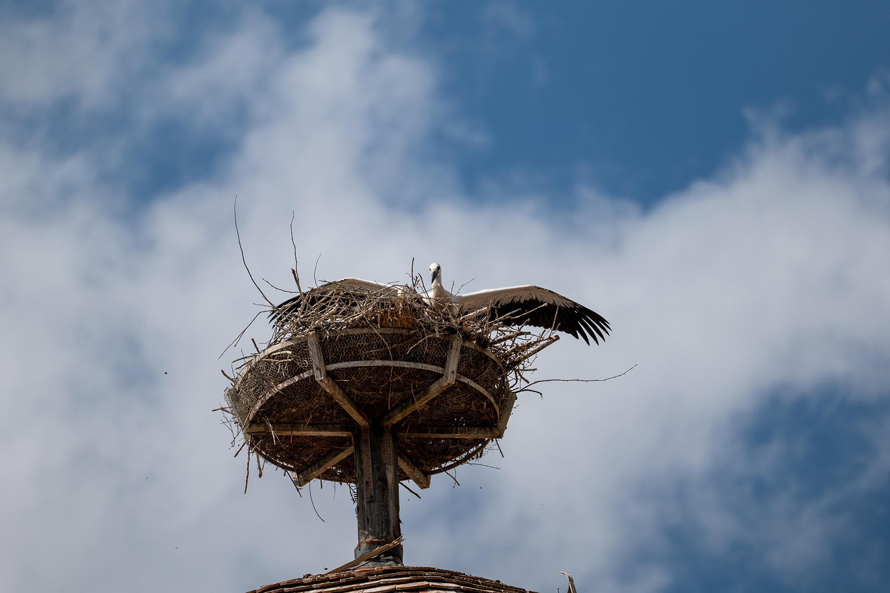 Auf dem Mönchsturm übt sich einer unserer drei Jungstörche beim Flattern …