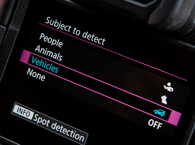 Die Motiverkennung umfasst wieder Menschen, Gesichter, Augen, Tiere (inkl. Vögel) und wurde nun auf Autos und Motorräder erweitert (ähnliches bietet die Olympus OM-D E-M1X), um Motorsportfotografen die Arbeit zu erleichtern.