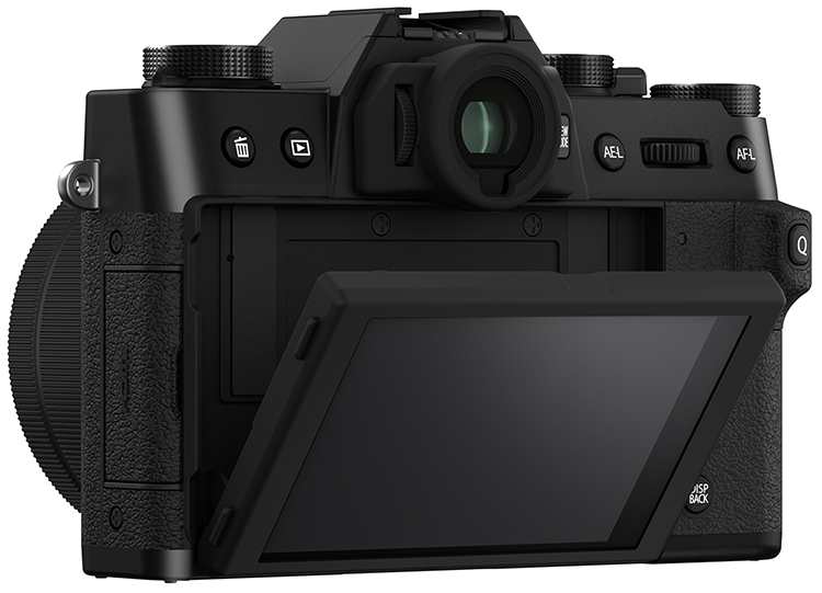 Wie das Vorgängermodell ist die X-T30 II auf der Rückwand mit einem klappbaren 3“-LCD-Monitor ausgestattet, der nun aber über eine Auflösung von 1,62 Mio. RGB-Dots verfügt.