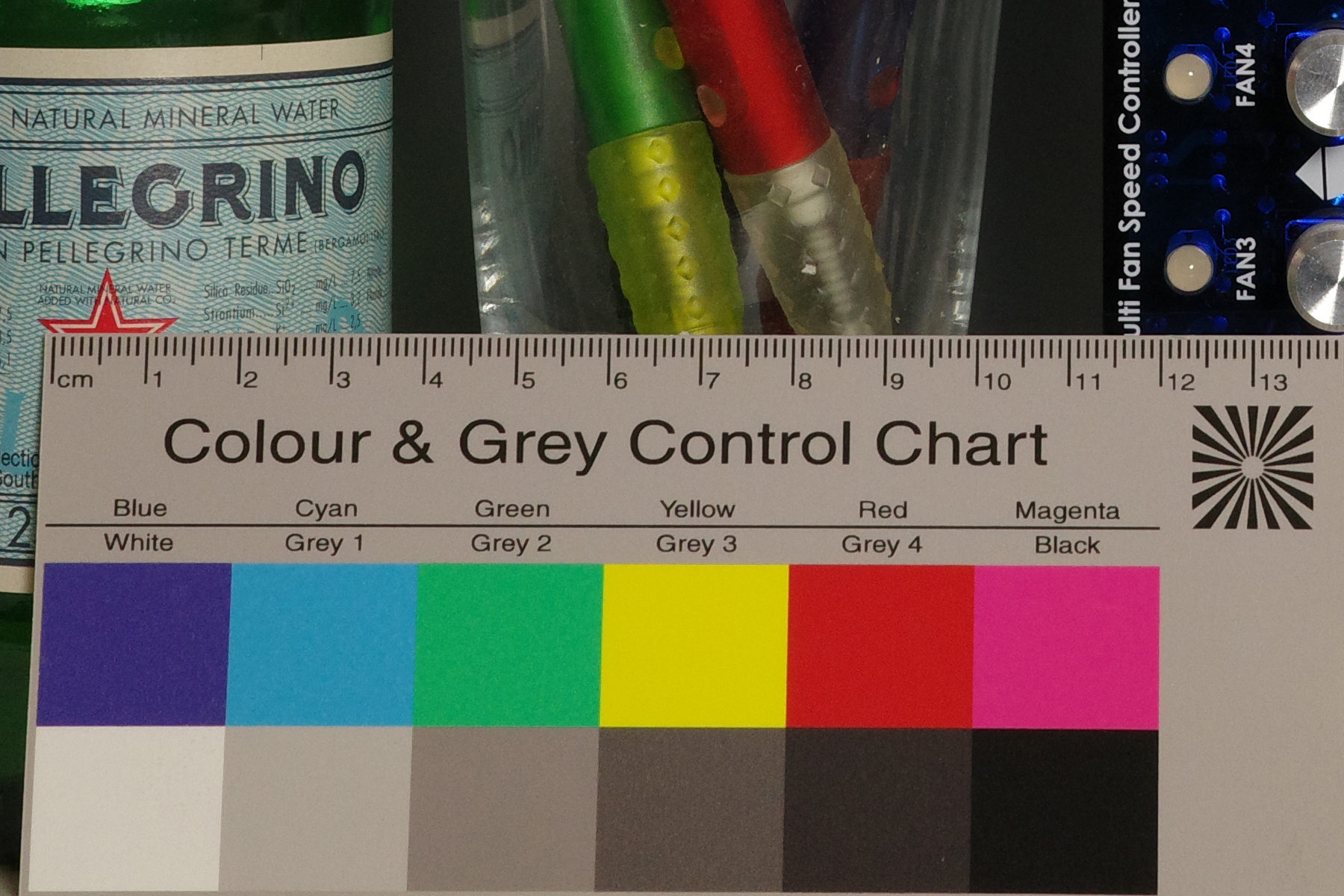 Das erste Bild zeigt den Aufbau im Studio, der wie immer mit einer Tageslicht-Fotoleuchte beleuchtet wurde. Die Helligkeit entspricht etwa EV 7.