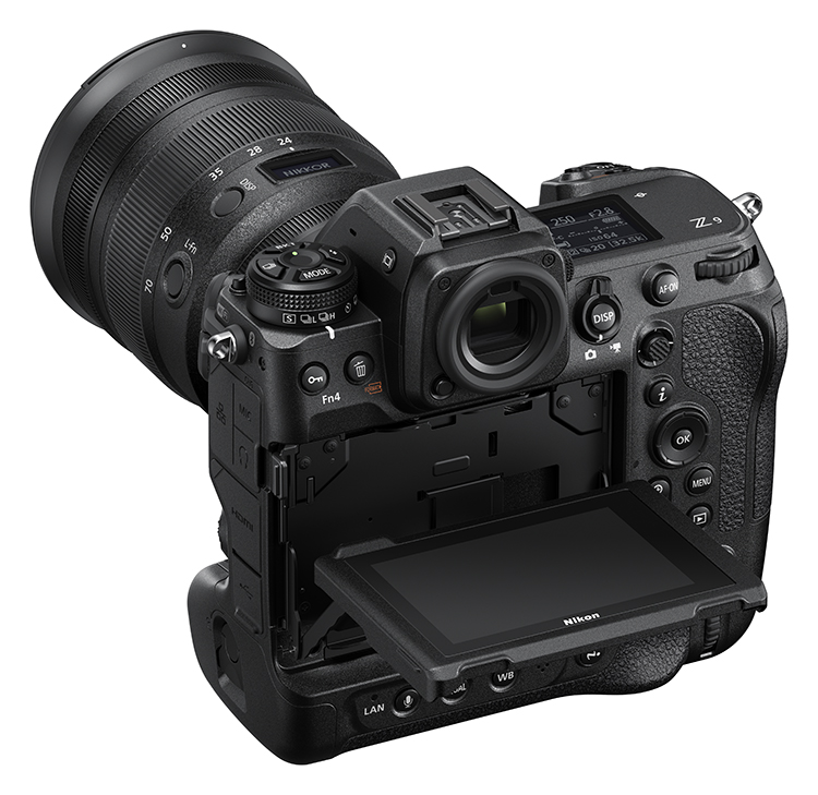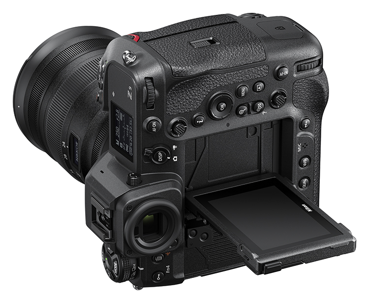 Der Sucher der Z 9 liegt mit einer Vergrößerung von 0,8x und einer Auflösung von 3,69 Mio. RGB-Dots auf einem Level mit den anderen Vollformat-Z-Modellen – allerdings wurde die Helligkeit der Sucheranzeige auf 3000 Nit gesteigert.