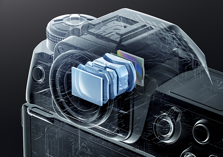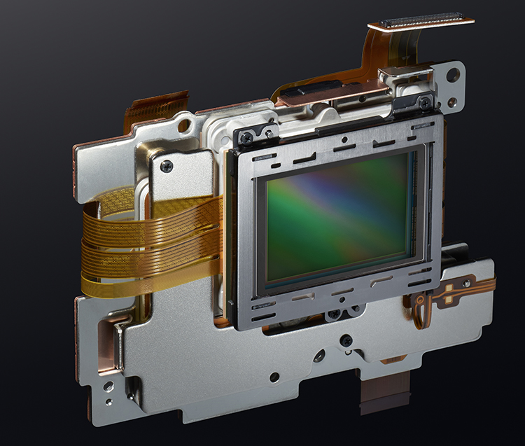 Der Sensor ist für die Stabilisierungsfunktion in fünf Achsen beweglich. Der IBIS arbeitet mit den Stabilisatoren in VR-Objektiven zusammen.