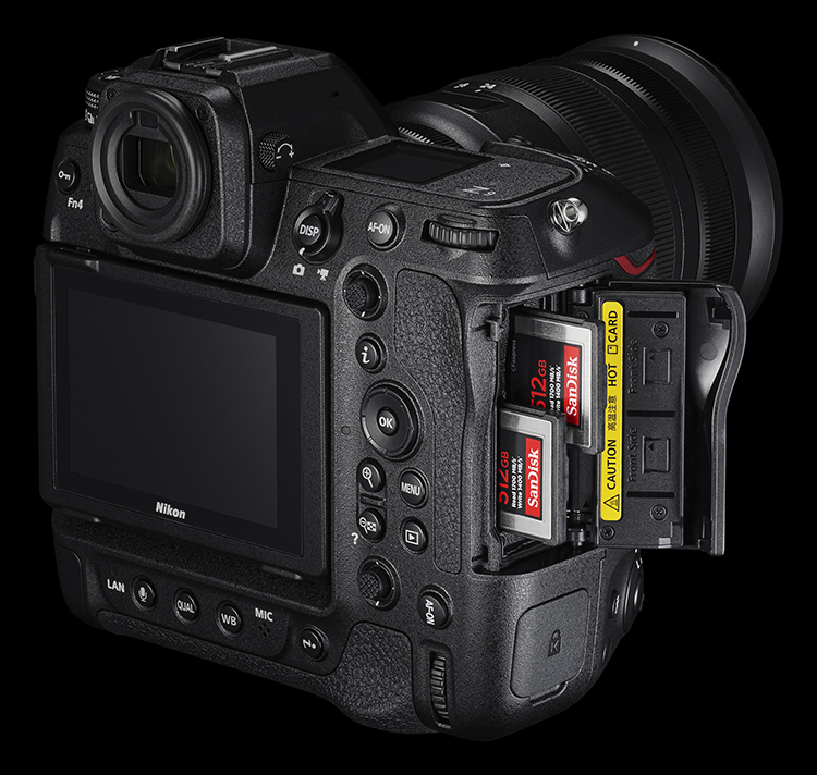Um auf die hohen Geschwindigkeiten zu kommen, sind beide Kartenslots der Z 9 auf CFexpress Typ B Karten oder XQD-Karten abgestimmt.