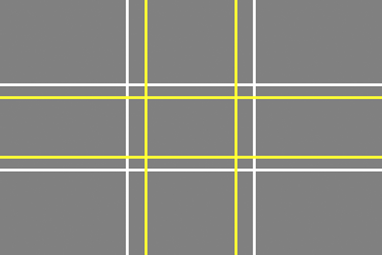 Die gelben Linien gelten für den Goldenen Schnitt.