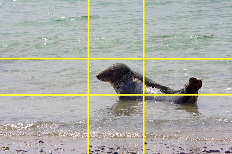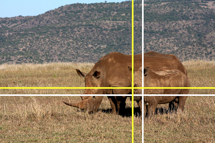 Allerdings muss es nicht unbedingt der Goldene Schnitt sein. Auch die einfachere Teilung nach Drittellinien, die in diesem Bild weiß eingetragen sind, sorgt für einen ruhigen, harmonischen Bildaufbau.