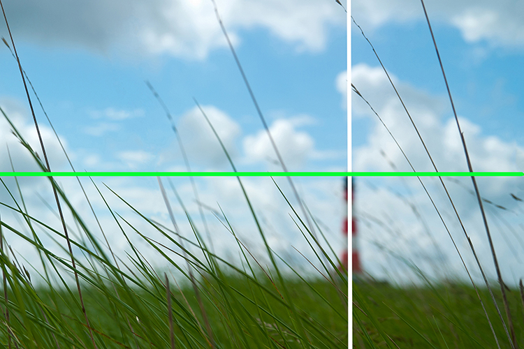 Anders sieht es aus, wenn man eine Kante oder ein sehr schmales Objekt an einer der Linien ausrichtet. Hier fällt der Unterschied ins Auge, wenn man ein bisschen Übung bei der Bildanalyse hat.