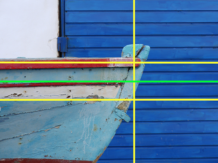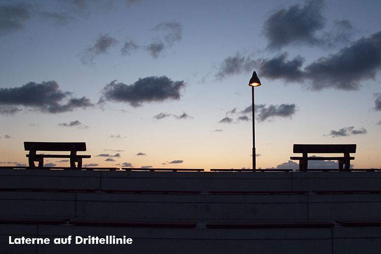 Die Linien und Schnittpunkte des Goldenen Schnitts oder der Drittelteilung müssen nicht immer auf die ganze Bildfläche bezogen sein, sondern können auch einmal auf einen Teil angewendet werden.