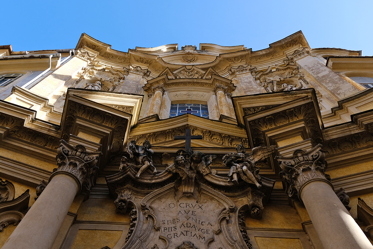 Schöne Gelegenheiten für symmetrische Bild findet man in Kuppelbauten, wo man die Kuppel in Schrägansicht oder direkt von unten ins Bild setzen kann (in letzterem Fall ist ein beweglicher Monitor eine große Hilfe, das nur nebenbei bemerkt!).