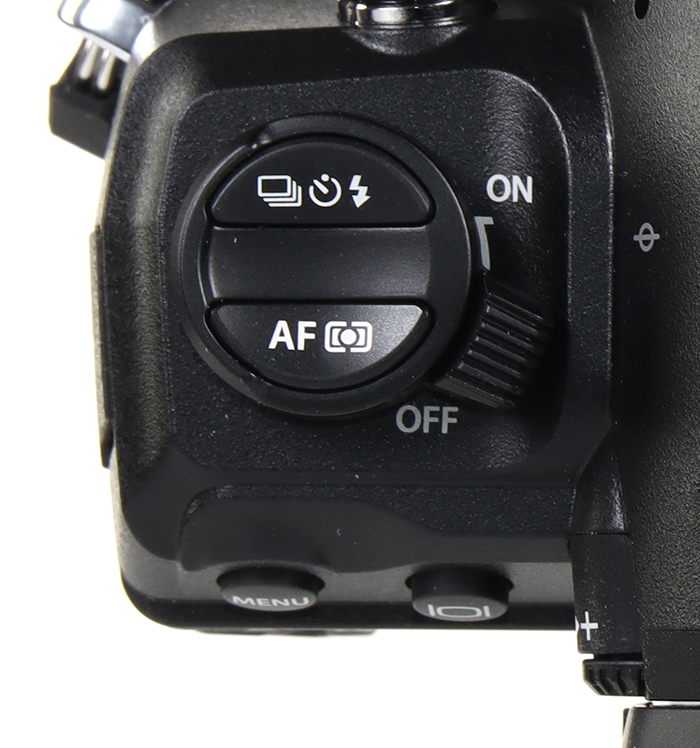 Ebenfalls neu ist, dass es einen AF-ON-Knopf gibt, mit dem man auch die Schärfe speichern kann. Dadurch wird der AEL/AFL-Speicherknopf zum reinen AEL-(Belichtungs)-Speicherknopf. Er rückt mit dem umgebenden Fn-Schalter etwas näher an den Sucher heran.