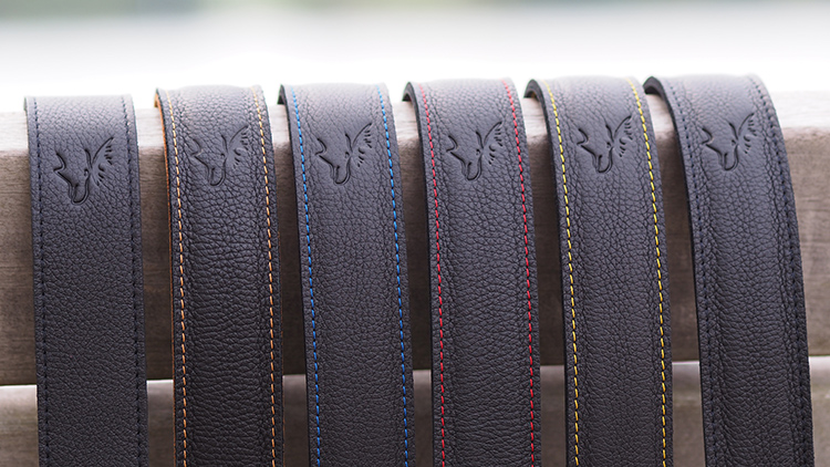 Um die Gurte stylisher zu gestalten, gibt es den schwarzen Eddycam Easy nicht mehr nur mit schwarzen Nähten, sondern auch mit gelber, roter und blauer Kontrastnaht. Passend zum Leder sind die Bänder und pulverbeschichteten Edelstahlklemmen in Schwarz gehalten. Für mehr Tragekomfort ist die 45 mm breite Lederauflagefläche mit Naturkautschuk ausgestattet.