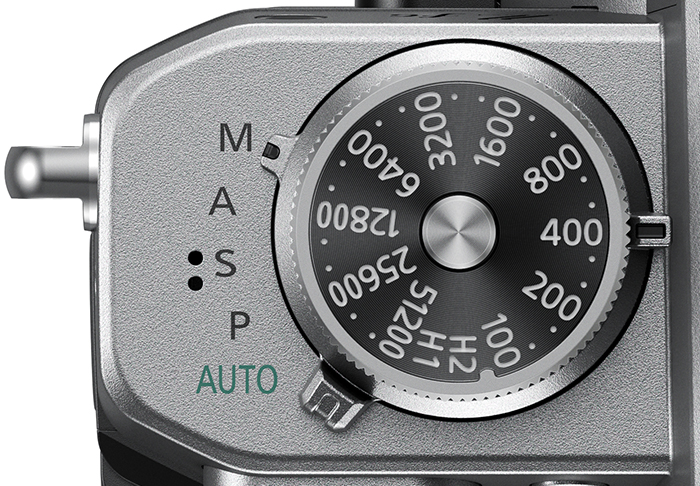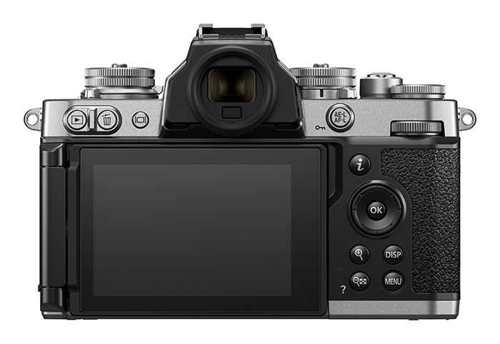 Dazu gehören die Farbgebung in Silber und Schwarz, die Belederung (auch des Sucheraufbaus), das runde Sucherokular sowie drei Wahlräder (für Verschlusszeiten / ISO-Werte / Korrekturfaktoren). Sie ergänzen die beiden Einstellräder für Zeigefinger und Daumen, die auch die Z 50 bietet. Die Betriebsart wählt man an einem kleinen Hebel unter dem ISO-Rad.