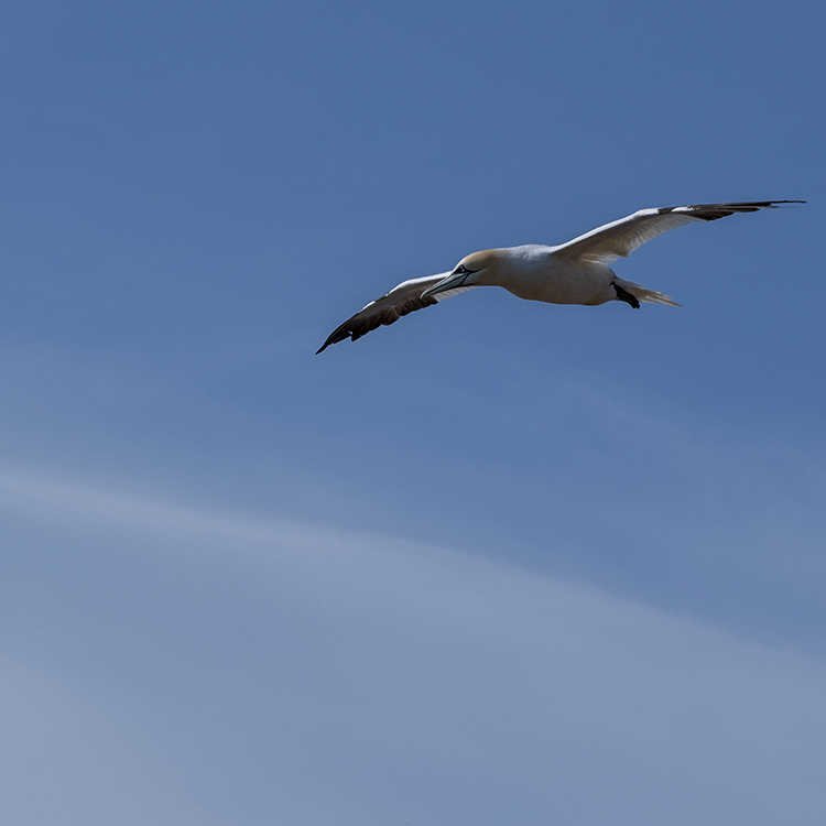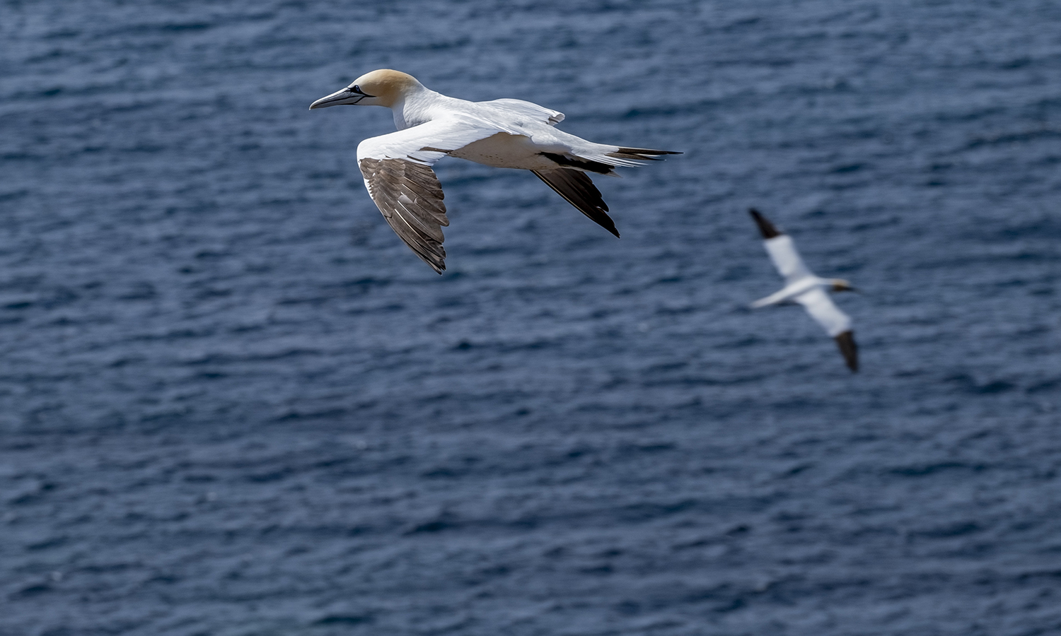 Von dort kann man die eleganten Basstölpel im Flug fotografieren …,