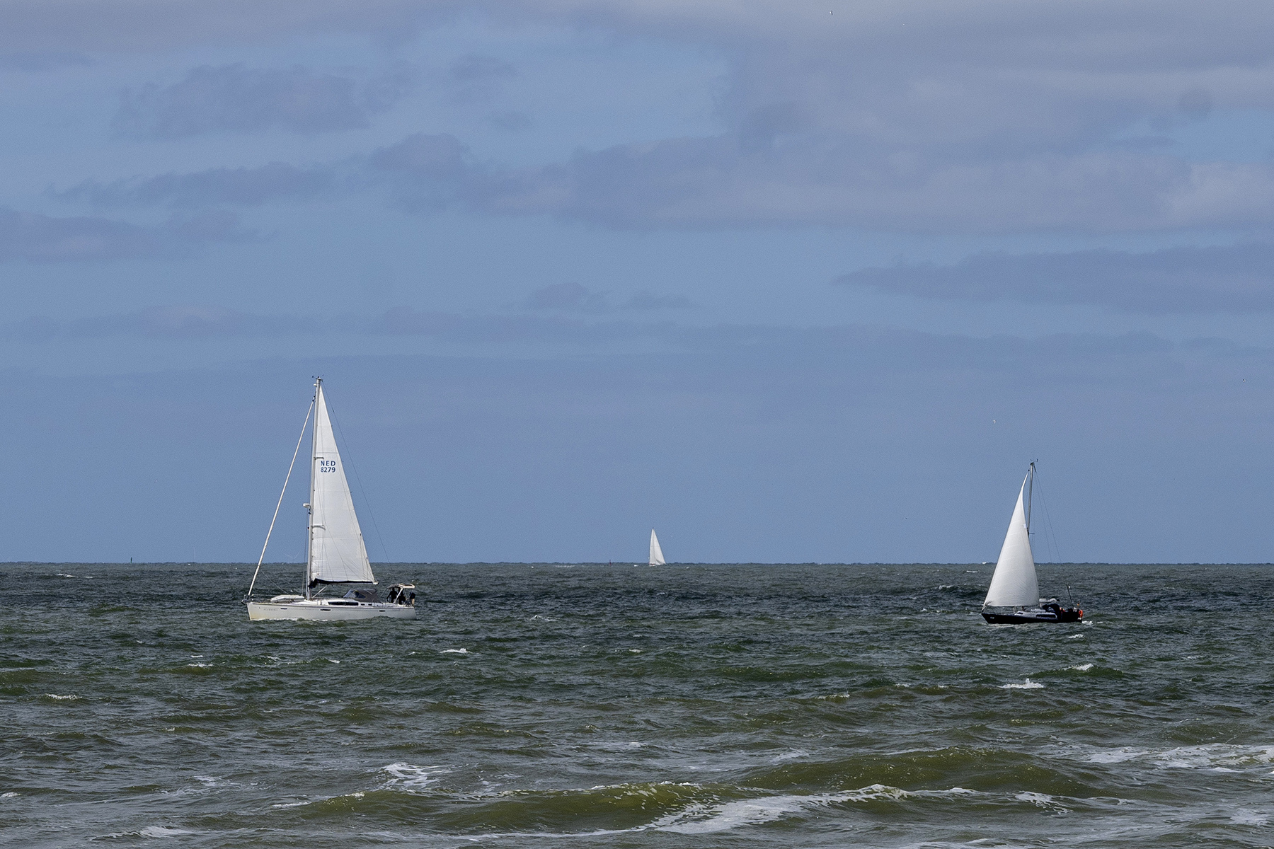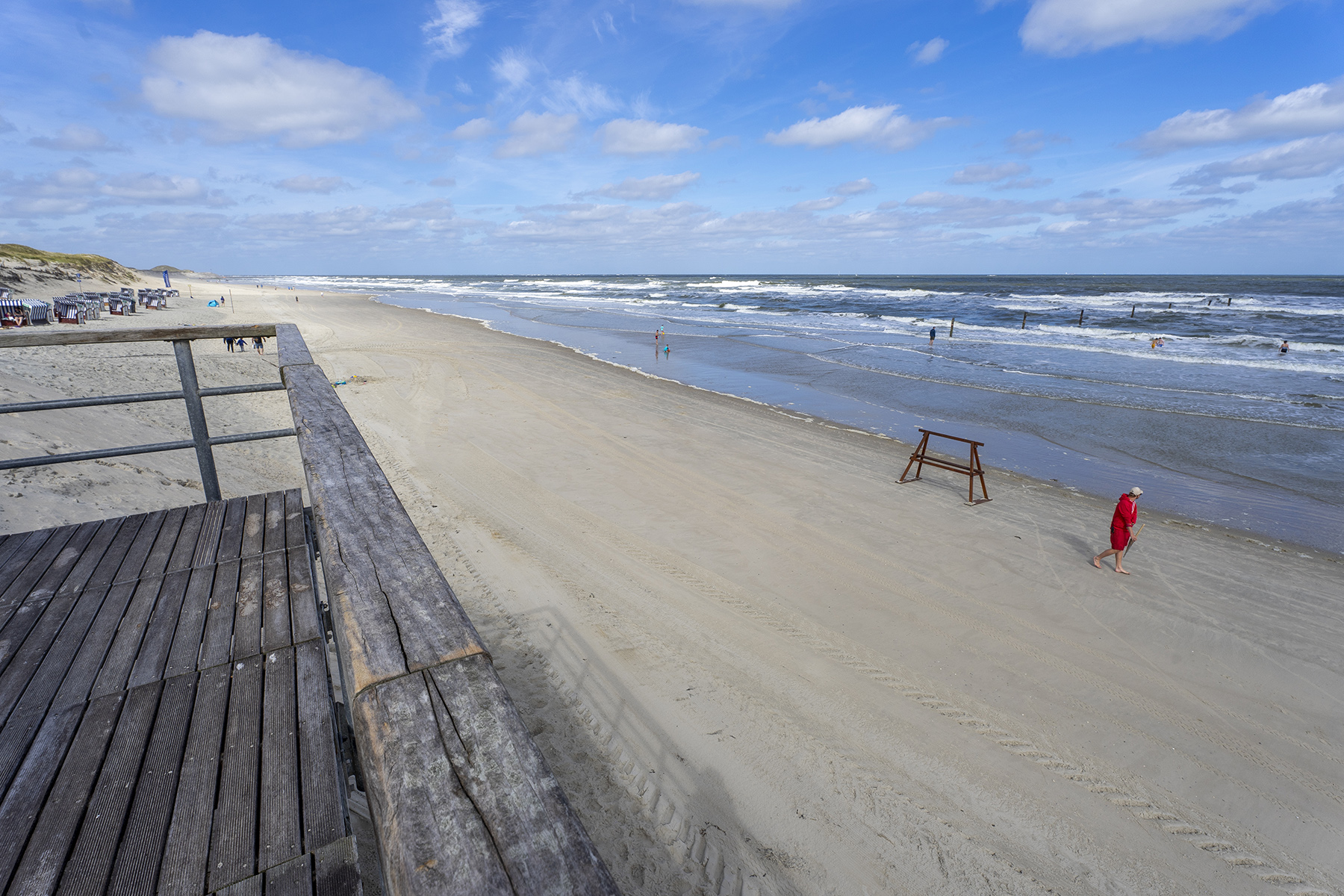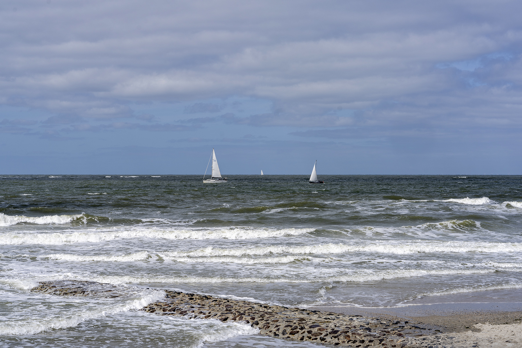 Hinter der Düne dann: Meer mit Dünung, die angesichts des vorherrschenden mäßigen Windes merkwürdigerweise recht stürmisch daherkommt. Für die ersten Überblickaufnahmen kommt das 16-28 mm zum Einsatz.